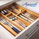 Aqwuszoh™ Bamboo Expandable Drawer Organizer – Adjustable Kitchen Utensil Tray
